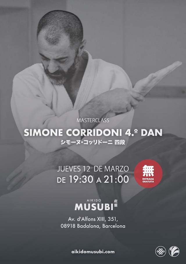 Este jueves 12 de marzo, de 19:30 a 21:00, tenemos una masterclass con Simone Corridoni en Aikido Musubi. ¡Todos son bienvenidos!