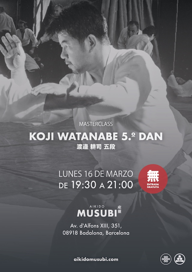 Este lunes 16 de marzo, de 19:30 a 21:00, tenemos una masterclass con Koji Watanabe en Aikido Musubi. ¡Todos son bienvenidos!
